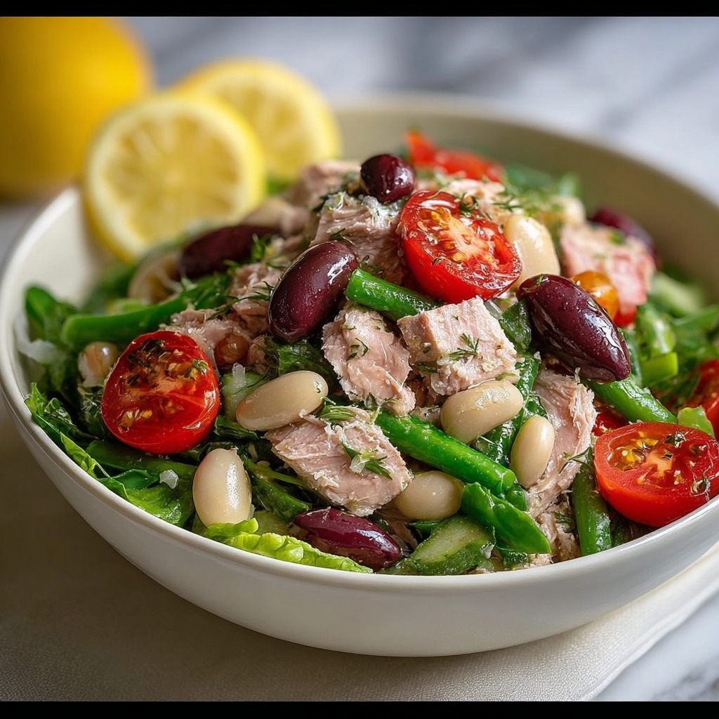 Cette salade est riche et équilibrée : protéines du thon et des haricots, fibres et vitamines des légumes, lipides de qualité grâce à l’huile d’olive. Elle constitue un repas complet et léger, adapté aux régimes sains et aux repas estivaux.
