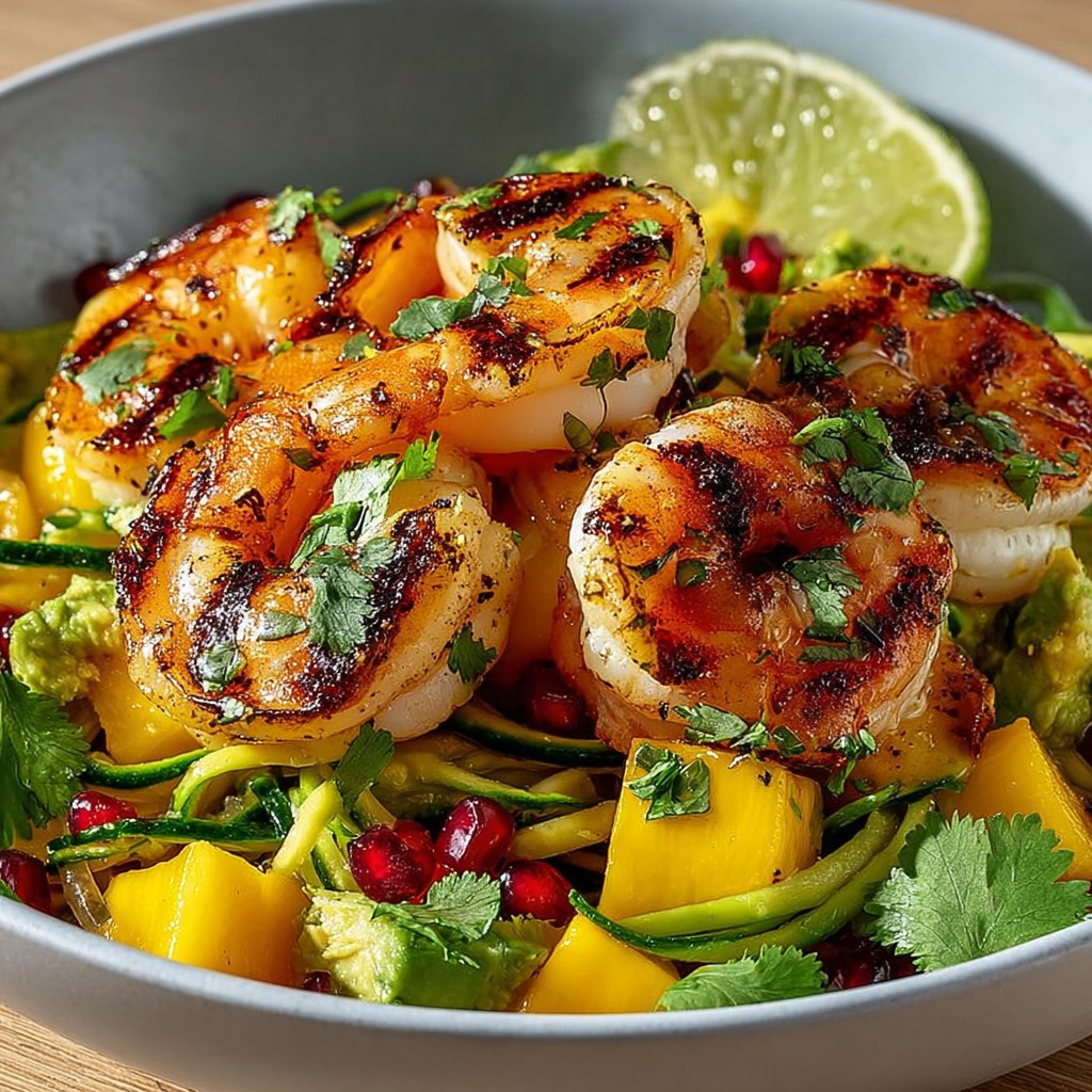 Salade Tropicale aux Crevettes Grillées, Mangue et Avocat