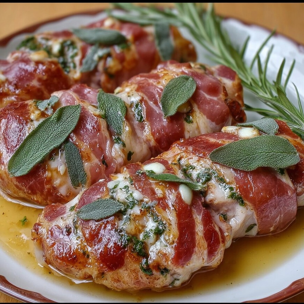Le jambon cru apporte une saveur salée et parfumée qui se marie parfaitement avec la douceur du veau. La sauge, déposée sur chaque escalope avant le jambon, diffuse un parfum subtil et légèrement boisé qui relève le plat. L’association jambon-sauge est traditionnelle et essentielle pour obtenir l’arôme caractéristique du saltimbocca alla Romana. Le jambon doit recouvrir uniformément le veau, en veillant à maintenir la feuille de sauge bien en place, éventuellement fixée avec un cure-dent.