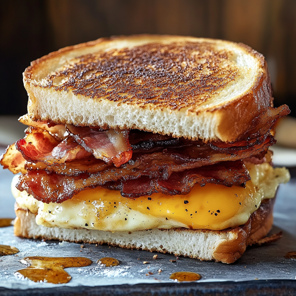 Pour un extra croustillant, faites caraméliser le bacon dans un peu de sirop d’érable avant de l’ajouter au sandwich. Cela ajoutera une touche sucrée irrésistible !