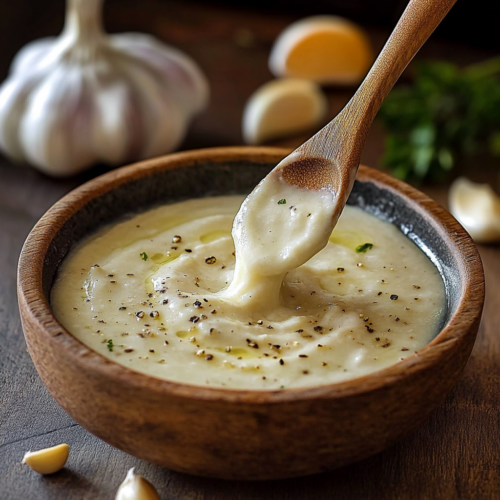 - Sauce comme trempette : Cette sauce est également idéale pour être utilisée comme trempette pour des pains à l’ail, des frites, ou même des légumes grillés comme des poivrons et des courgettes. Son goût riche et crémeux en fait une trempette délicieuse et versatile.