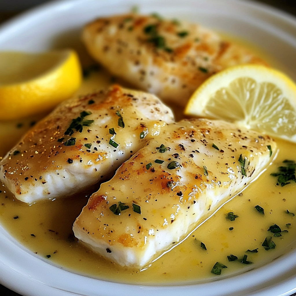 - Disposez les filets de poisson sur des assiettes de service. Versez la sauce au beurre citronné sur le poisson ou à côté.