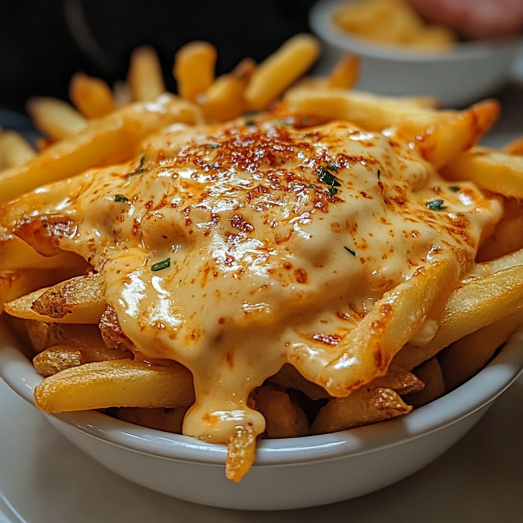 Versez-la généreusement sur des frites bien chaudes, et ajoutez des toppings comme du bacon croustillant, des oignons frits ou même du pulled pork pour une version deluxe.