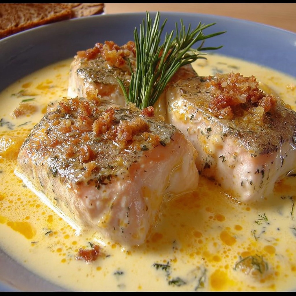 La crème fraîche peut être ajoutée en petite quantité pour stabiliser davantage l’émulsion et apporter une légère douceur, sans masquer la finesse du beurre et du vin. Le sel et le poivre viennent ajuster l’assaisonnement, permettant à la sauce de rester équilibrée et de sublimer le goût naturel du poisson.