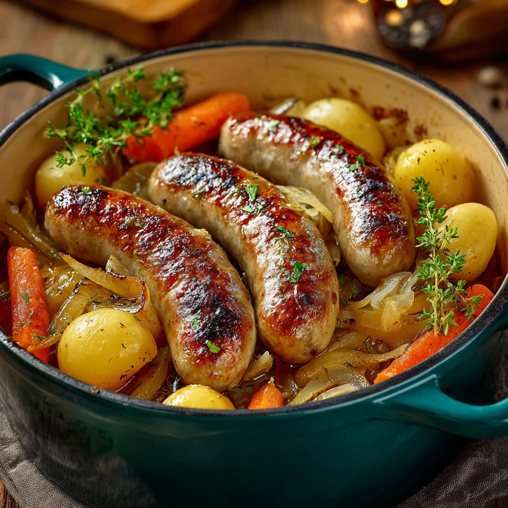 Les saucisses campagnardes en cocotte aux pommes de terre sont un plat incontournable de la cuisine rustique française et belge. La simplicité des ingrédients contraste avec la richesse des saveurs obtenues grâce à la cuisson lente et attentive. Ce plat familial, chaleureux et convivial, séduit par sa générosité et son authenticité.