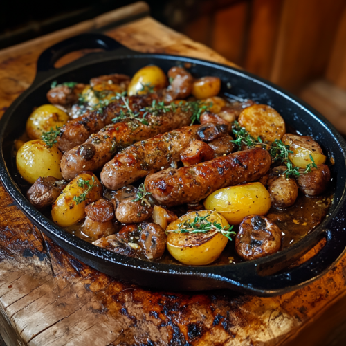 - Savoureuse et réconfortante : L’association des pommes de terre fondantes, des champignons parfumés et des saucisses dorées est irrésistible.