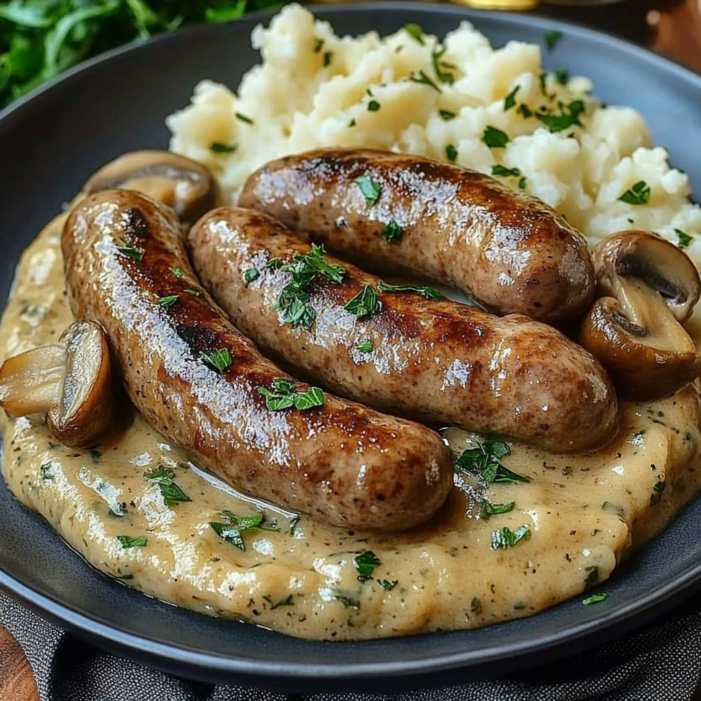 La saucisse de Toulouse, emblème du sud-ouest de la France, est connue pour son goût franc, sa texture généreuse et sa capacité à sublimer les plats rustiques. Associée ici à une sauce crémeuse à la moutarde et à des champignons fondants, elle révèle toute sa richesse aromatique.