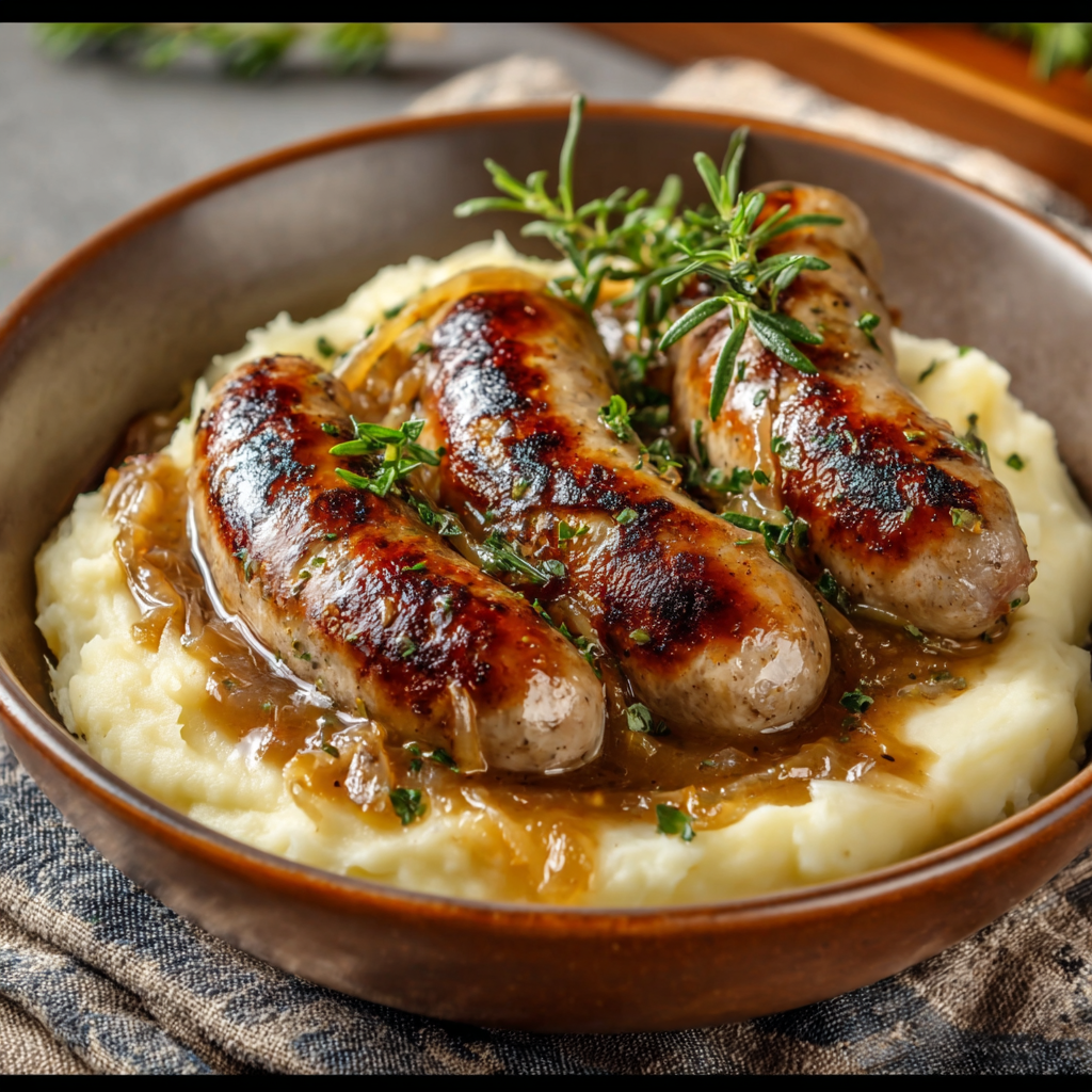 Il existe des plats qui dépassent la simple notion de nourriture. Ce sont des plats qui réconfortent, qui rappellent l’enfance, les repas du dimanche, les cuisines chaudes où l’odeur des oignons fondus se mêle à celle des pommes de terre. Saucisses, purée et sauce aux oignons caramélisés fait partie de ces recettes intemporelles, profondément ancrées dans les traditions culinaires populaires.