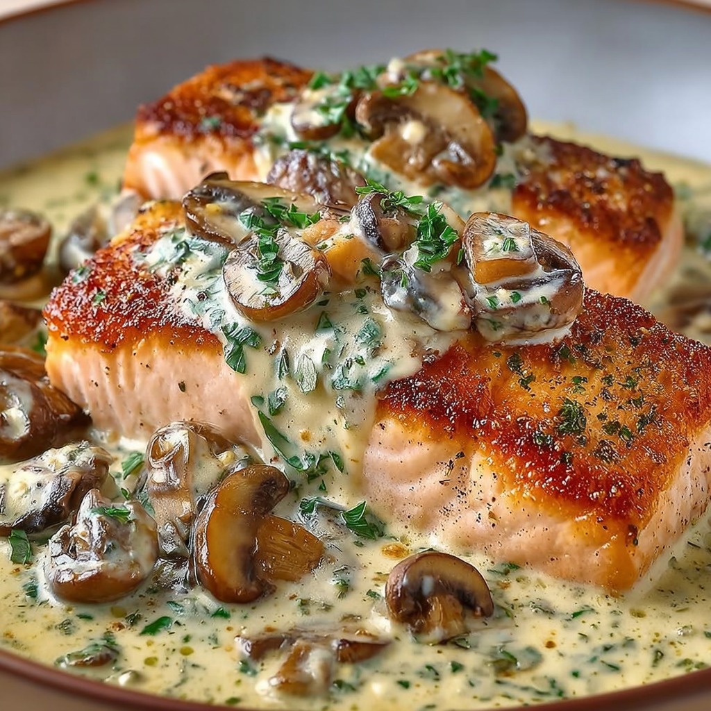 Saumon à la Crème, Ail, Champignons