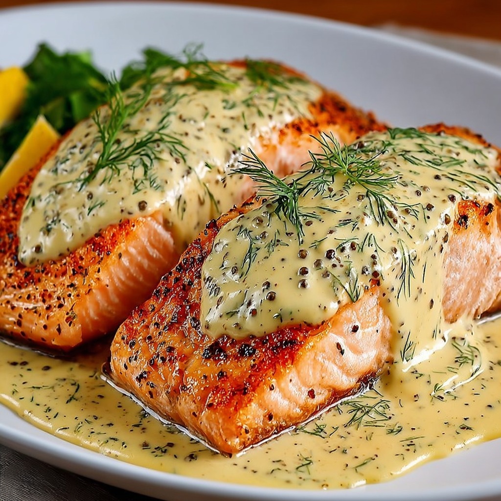 Le saumon rôti sauce crémeuse à la moutarde et à l’aneth offre un contraste subtil entre la tendreté du poisson, l’onctuosité de la sauce et la fraîcheur des herbes. Chaque bouchée combine douceur, crémeux et parfum herbacé, créant une expérience gustative raffinée et équilibrée. Des variantes peuvent inclure l’ajout de câpres ou de citron pour apporter une touche d’acidité, ou l’incorporation de petits légumes pour enrichir la texture et la couleur. La précision de la cuisson et l’attention portée à la sauce garantissent un résultat fondant, sa