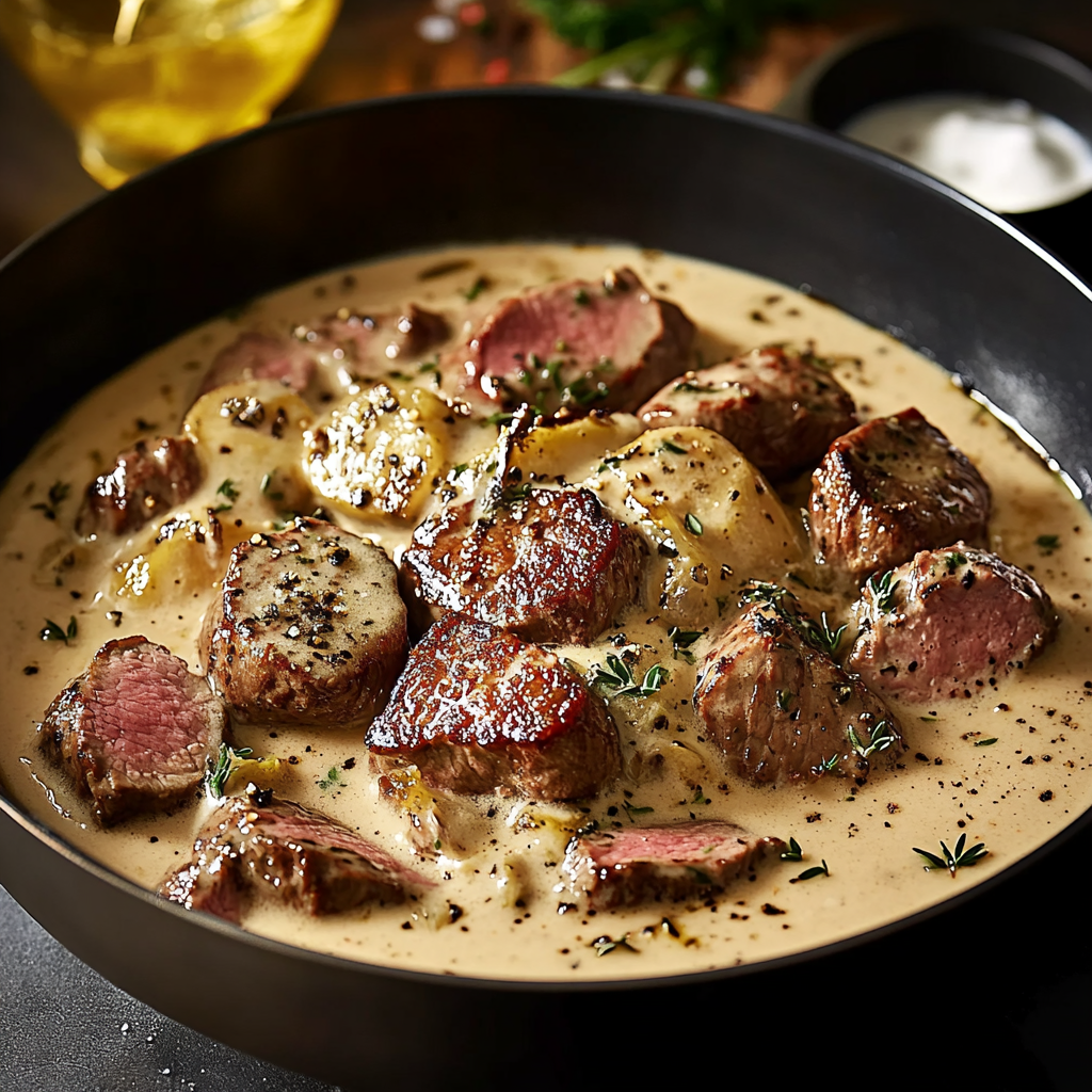 - Accompagnement idéal : Ce sauté de bœuf s’accompagne parfaitement d’une purée de pommes de terre ou de riz pour un repas complet. La purée, en particulier, absorbe merveilleusement bien la sauce crémeuse.