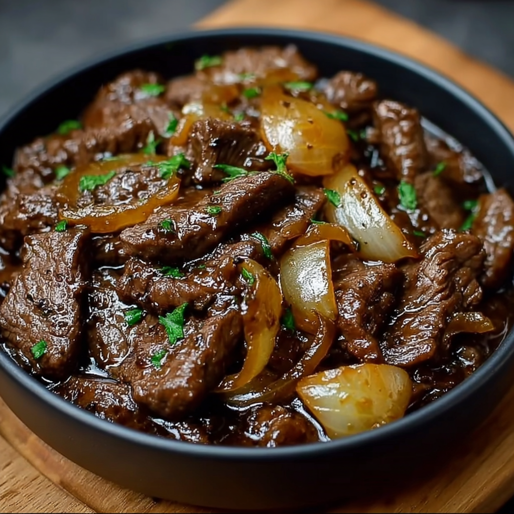 Grâce à une cuisson rapide à feu vif et à une sauce parfumée, le bœuf reste juteux et les oignons développent une saveur caramélisée irrésistible.