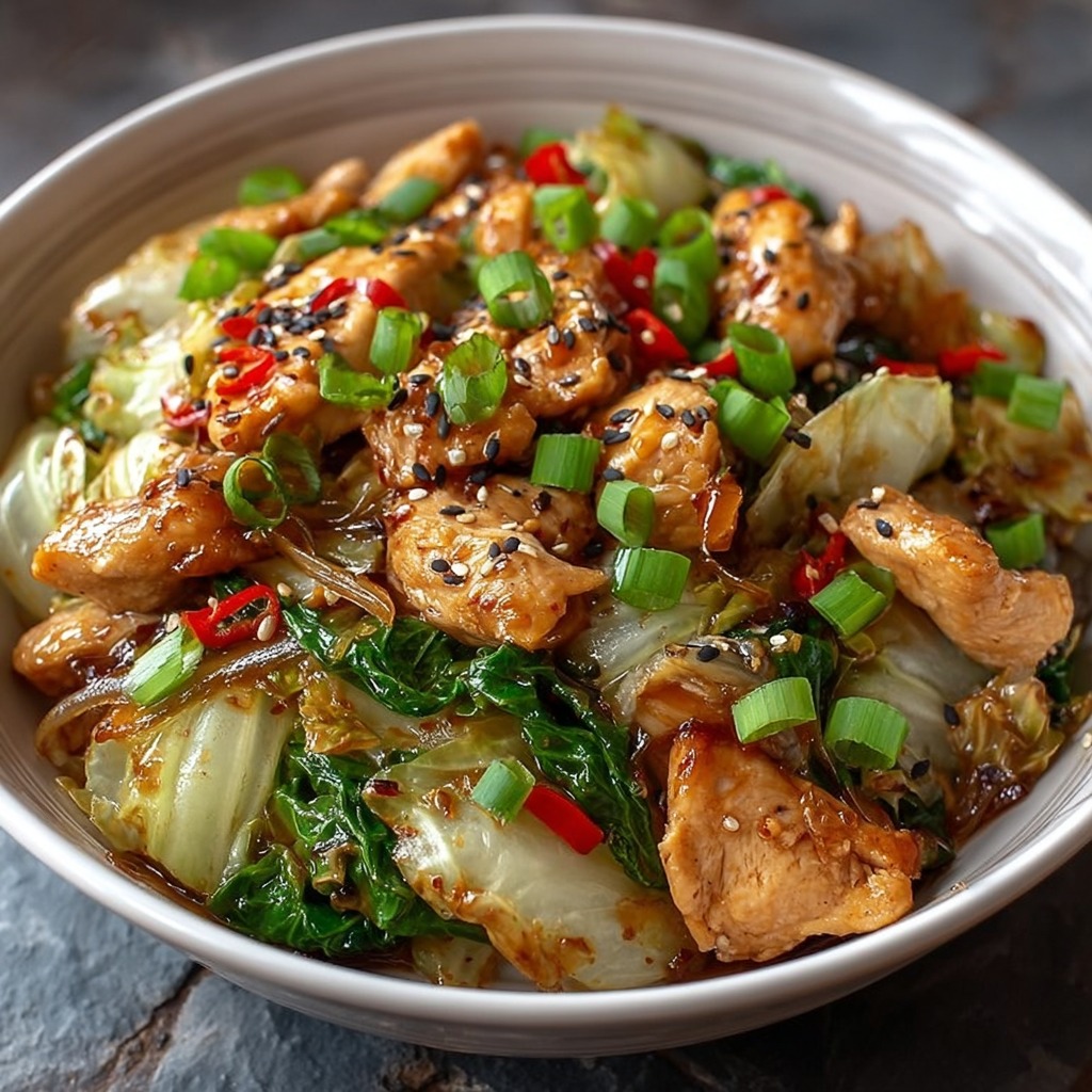 Le sauté de chou et poulet à la chinoise est un plat complet, rapide et savoureux. Il illustre parfaitement l’art du stir-fry asiatique : cuisson rapide, ingrédients frais et saveurs équilibrées. Sa texture croquante, sa sauce onctueuse et ses arômes subtils en font un repas familial ou convivial qui plaît à tous. Facilement adaptable selon les goûts et les ingrédients disponibles, ce plat reste un incontournable de la cuisine maison à la chinoise, al