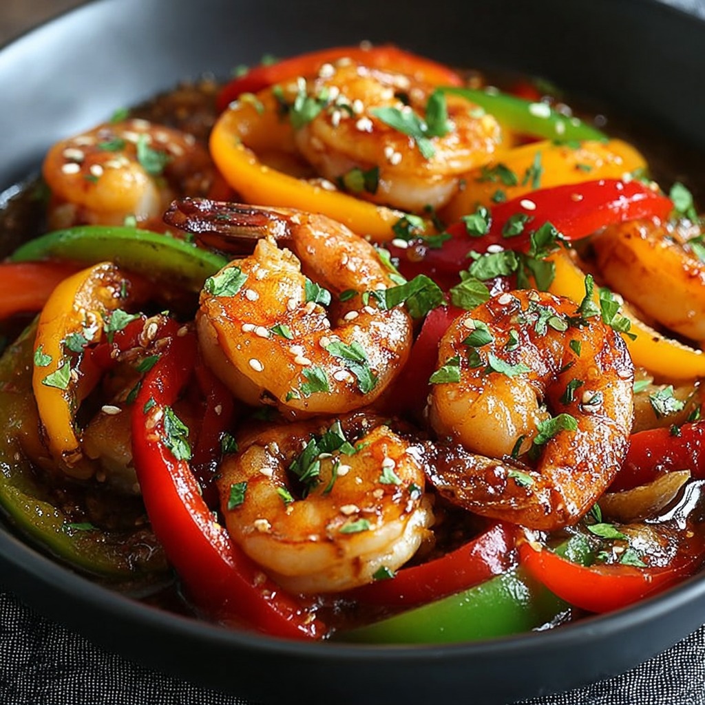 Ce plat peut être préparé à l’avance en partie. Vous pouvez cuire les poivrons et les oignons à l’avance, puis les conserver au réfrigérateur. Il ne restera plus qu’à réchauffer et à ajouter les crevettes au dernier moment pour préserver leur texture tendre.