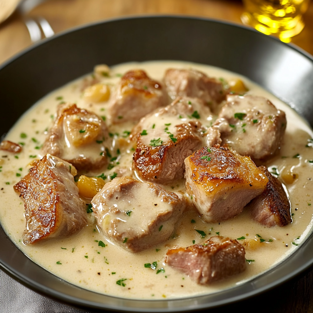 Ce plat est riche en protéines grâce au porc et en graisses, principalement en raison de la crème et du beurre. Il est idéal pour un repas réconfortant et satisfaisant.