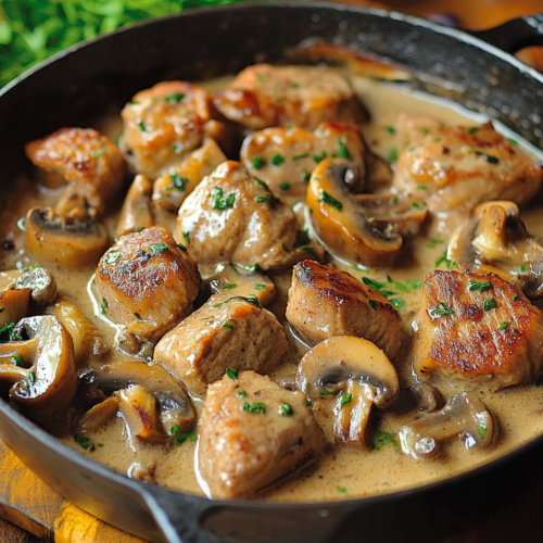 Sauté de Porc à la Moutarde et aux Champignons : Un Dîner Crémeux et Réconfortant