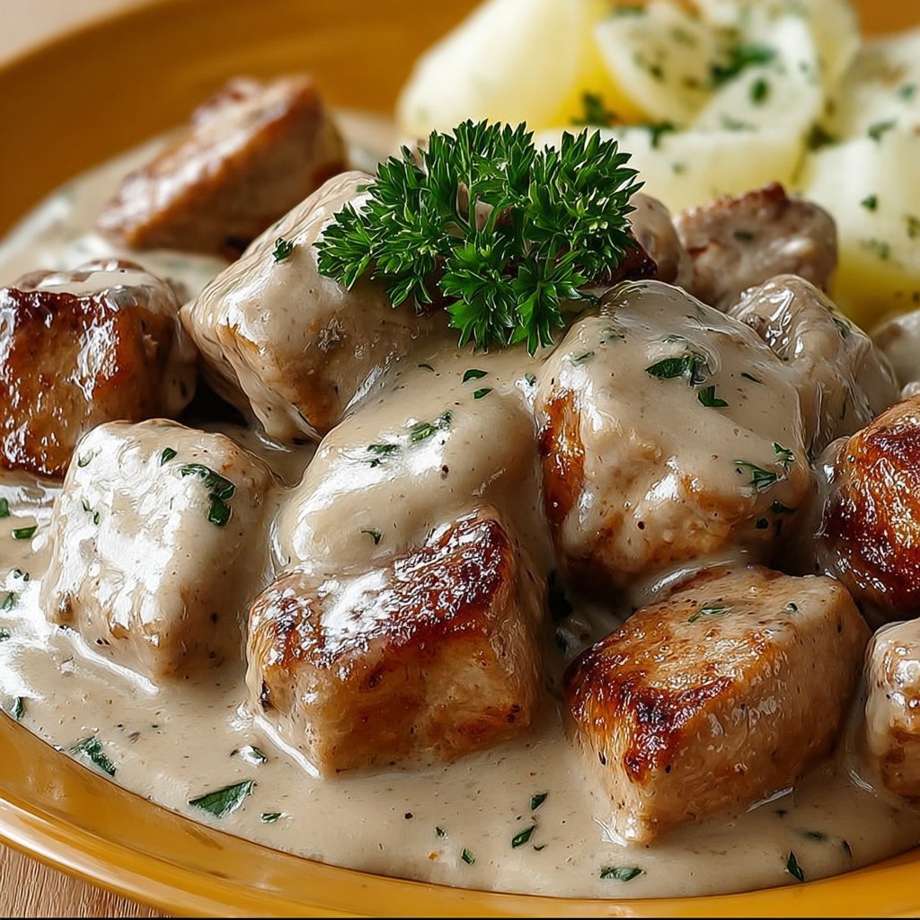 Le sauté de porc à la moutarde repose sur une combinaison de tendreté, de sauce crémeuse et de chaleur aromatique apportée par la moutarde. La viande de porc choisie pour ce plat doit être suffisamment persillée afin de garantir une texture moelleuse après une cuisson prolongée. Les morceaux provenant de l’épaule conviennent particulièrement bien, car ils gardent leur souplesse et s’imprègnent facilement des saveurs de la sauce.