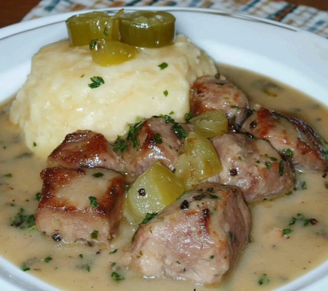 Le sauté de porc aux câpres et aux cornichons est un plat savoureux qui mélange subtilement l’acidité des cornichons et des câpres avec la tendreté du porc mijoté. Ce plat convivial s’accompagne idéalement de purée de pommes de terre, de riz ou de pâtes pour une expérience gustative réconfortante.