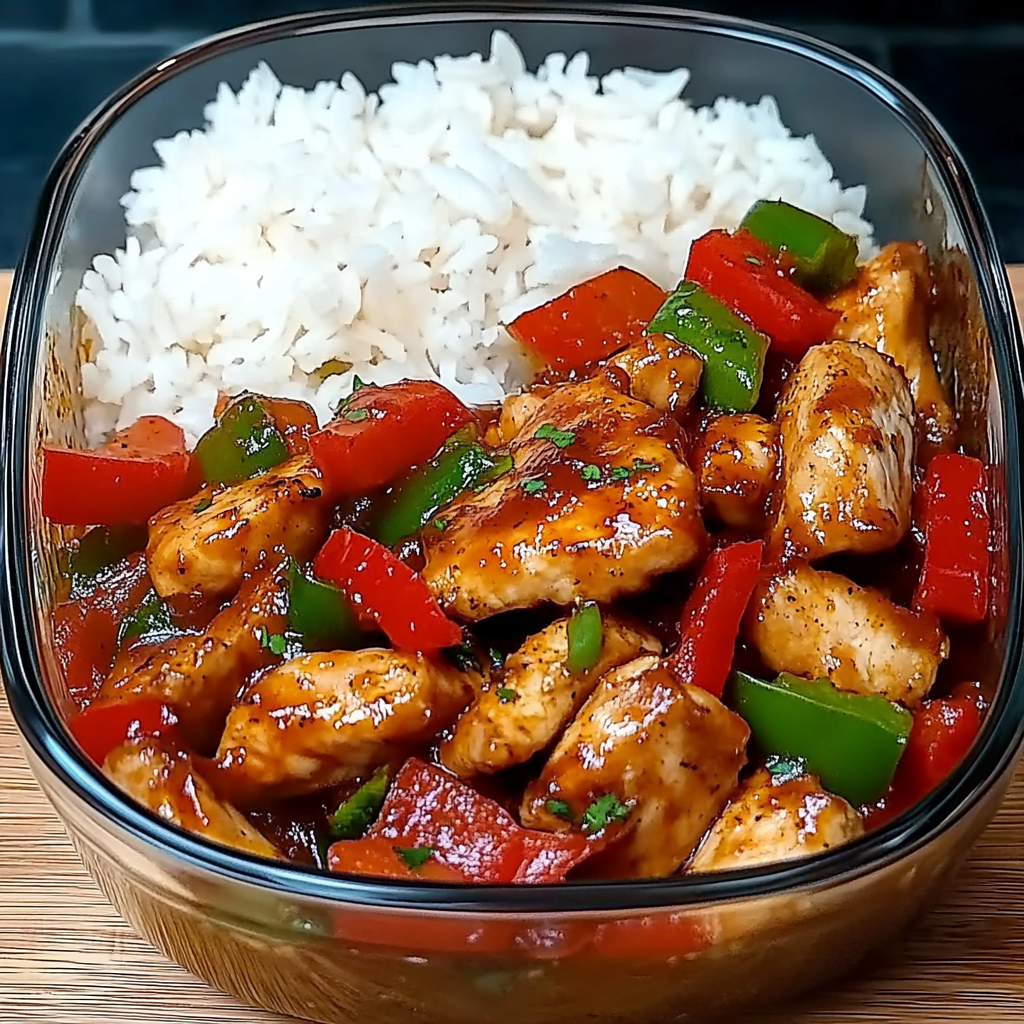 Savourez un délicieux sauté de poulet à l’ail grillant, accompagné de poivrons colorés et de riz vapeur. Ce plat allie des saveurs riches et des textures variées qui raviront vos papilles. Simple à préparer, il est parfait pour un dîner en famille ou une occasion spéciale. Il combine la tendreté du poulet, la douceur des poivrons et la légèreté du riz pour un repas équilibré, tout en étant plein de saveurs. De plus, il peut être facilement personnalisé avec d’autres légumes ou épices selon vos préférences.
