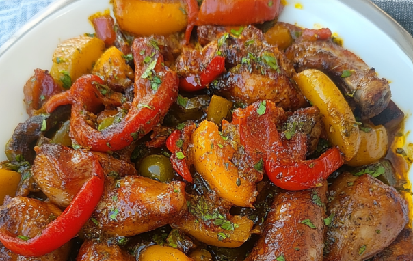 Remettez le poulet et les saucisses dans la poêle avec les légumes.