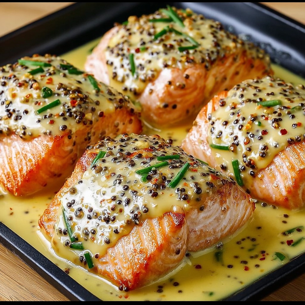 La texture finale de la sauce doit être suffisamment épaisse pour bien napper le saumon, tout en conservant une fluidité agréable. Les grains de moutarde à l’ancienne restent visibles et apportent un aspect visuel attrayant, tandis que le citron diffuse son parfum dans toute la préparation. L’équilibre obtenu entre le crémeux de la sauce, la fraîcheur du citron et la saveur douce du saumon constitue le point fort de ce plat. L’assaisonnement final demande simplement quelques ajustements en sel et en poivre. Le saumon étant naturellement savoureux, il ne nécessite pas une quantité excessive de sel. Le poivre, en revanche, peut être légèrement accentué pour souligner le caractère de la moutarde.