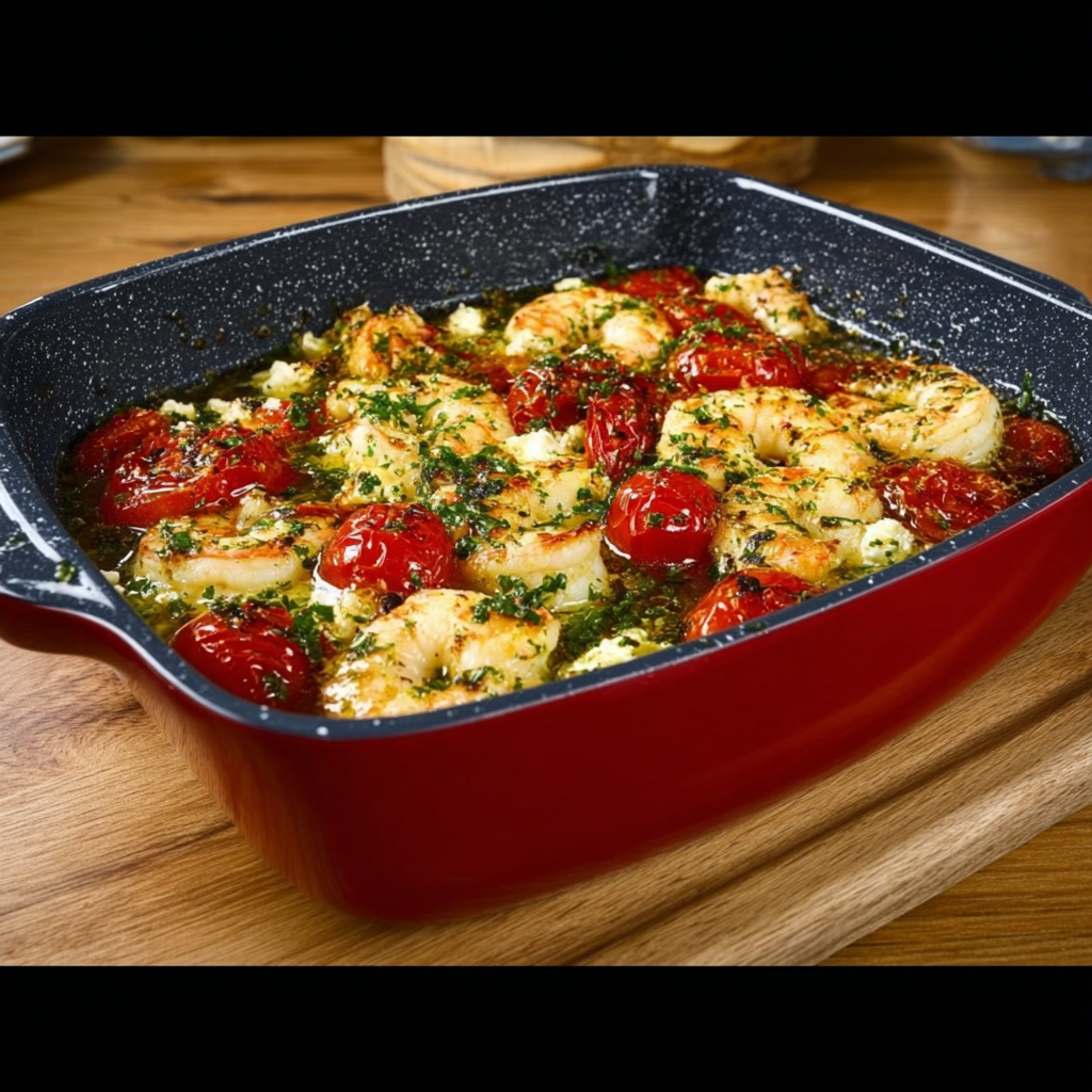 Scampis au Four à l’Ail, à la Feta et aux Tomates Cerises : un plat méditerranéen rapide et savoureux