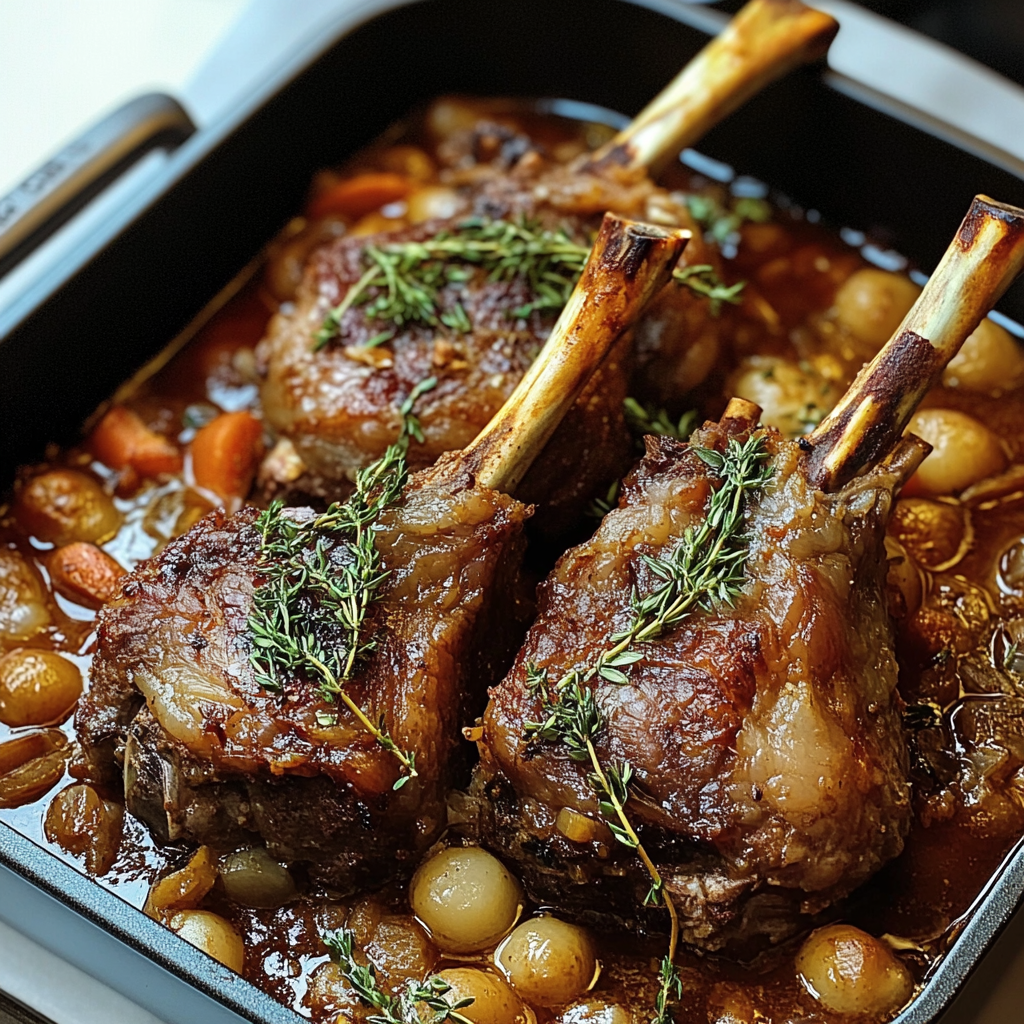 - Marinade : Pour une saveur encore plus profonde, laissez mariner les shanks d’agneau dans le vin rouge pendant quelques heures ou toute une nuit. Cela aidera à attendrir la viande et à infuser plus de saveurs.