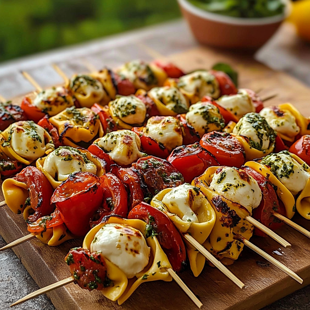 • 9 oz de tortellini au fromage : Les tortellinis, petits raviolis farcis, sont parfaits pour ajouter une texture moelleuse à ces brochettes.