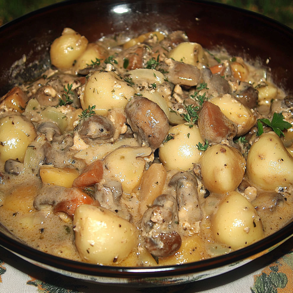 Le Sot-l’y-laisse de Dinde, Pommes de Terre & Champignons à la Sauce Crème & Moutarde est un plat mijoté, gourmand et réconfortant , parfait pour un repas en famille ou entre amis.