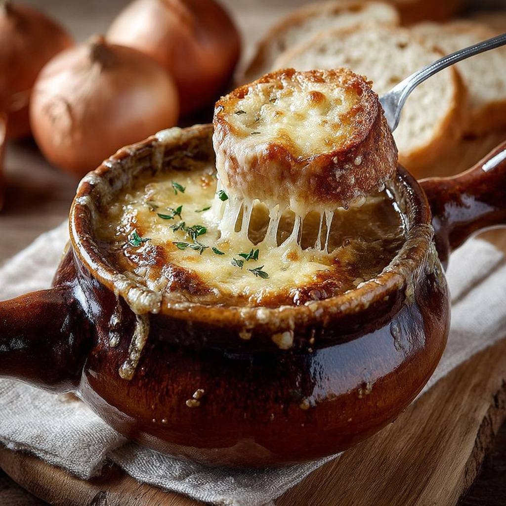 En conclusion, la soupe à l’oignon gratinée est bien plus qu’une soupe. C’est un symbole de tradition, de convivialité et de gourmandise. Elle incarne la chaleur des foyers, la générosité des tables françaises et le plaisir des repas partagés. Qu’elle soit dégustée dans une brasserie parisienne au cœur de la nuit ou dans une maison de campagne en hiver, elle garde toujours le même pouvoir réconfortant. Sa simplicité apparente cache une richesse de saveurs et une profondeur culturelle qui expliquent son succès intemporel. C’est un plat qui traverse les générations et continue de séduire par son authenticité et sa gourmandise.