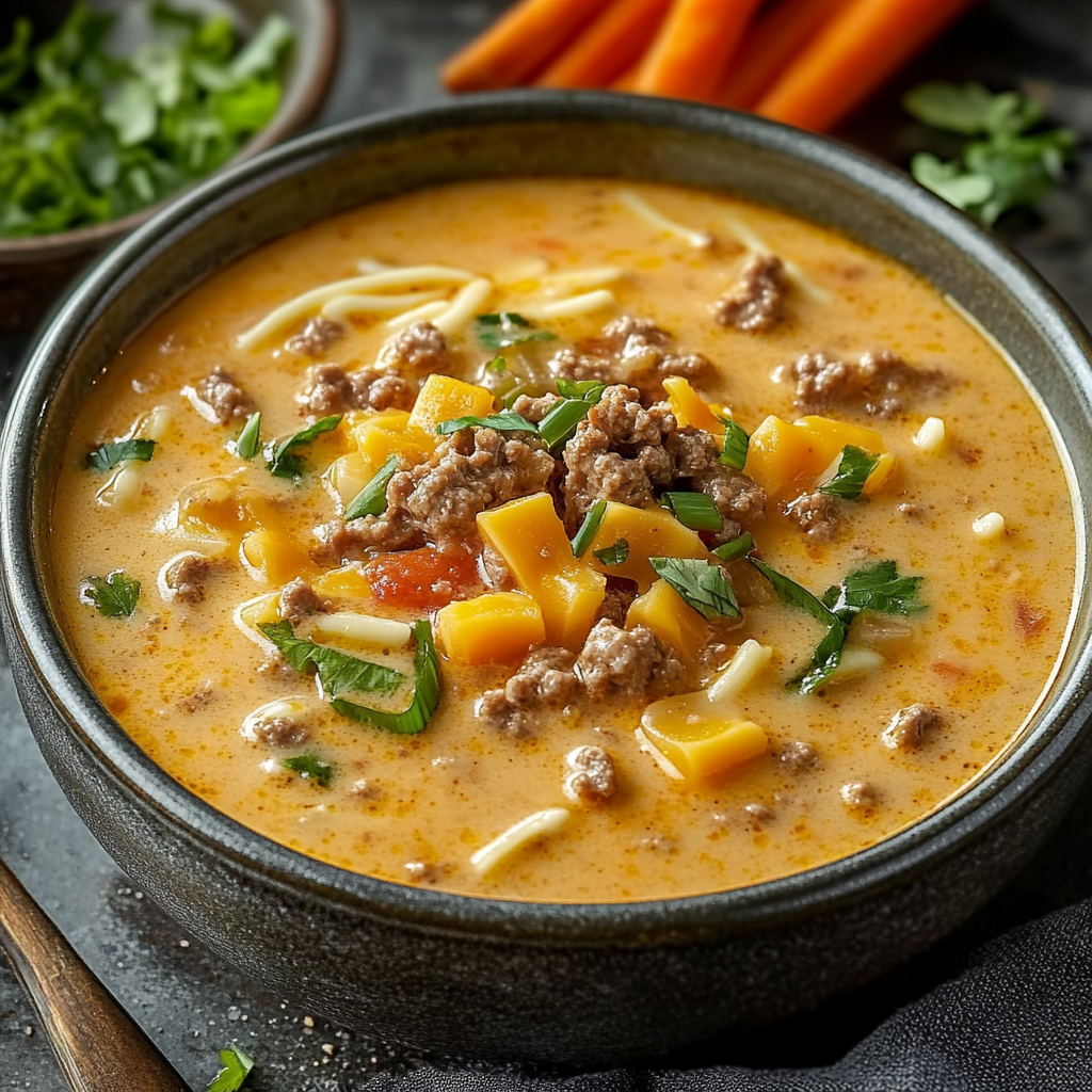 Cette Soupe Burger au Fromage en Mijoteuse est idéale pour les jours où vous avez besoin de réconfort. Sa préparation simple et son goût riche en font un incontournable. Que ce soit pour un repas en famille ou un repas rapide en semaine, cette soupe vous régalera à coup sûr !