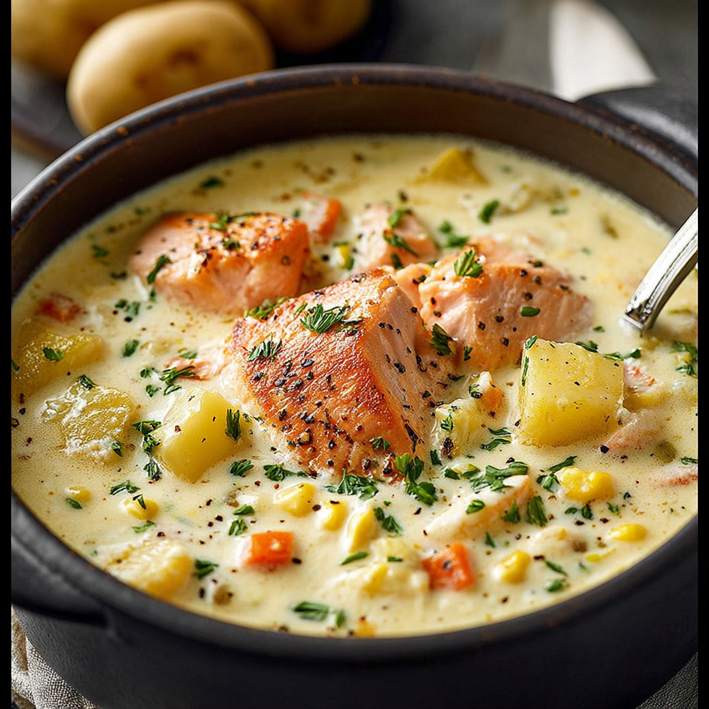 La soupe crémeuse au saumon, aussi appelée soupe nordique, est un classique de la cuisine scandinave, appréciée pour sa richesse, son goût délicat de poisson et sa texture veloutée. Elle associe des ingrédients simples comme des pommes de terre, des carottes, de l’aneth et une bonne crème, à la noblesse du saumon frais. Un mariage parfait entre rusticité et élégance culinaire.
