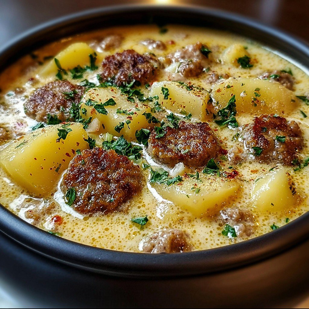 La soupe crémeuse aux saucisses et aux pommes de terre est une recette traditionnelle, économique et chaleureuse. Elle allie le fondant des pommes de terre, le goût des saucisses dorées et la douceur de la crème dans un équilibre parfait.