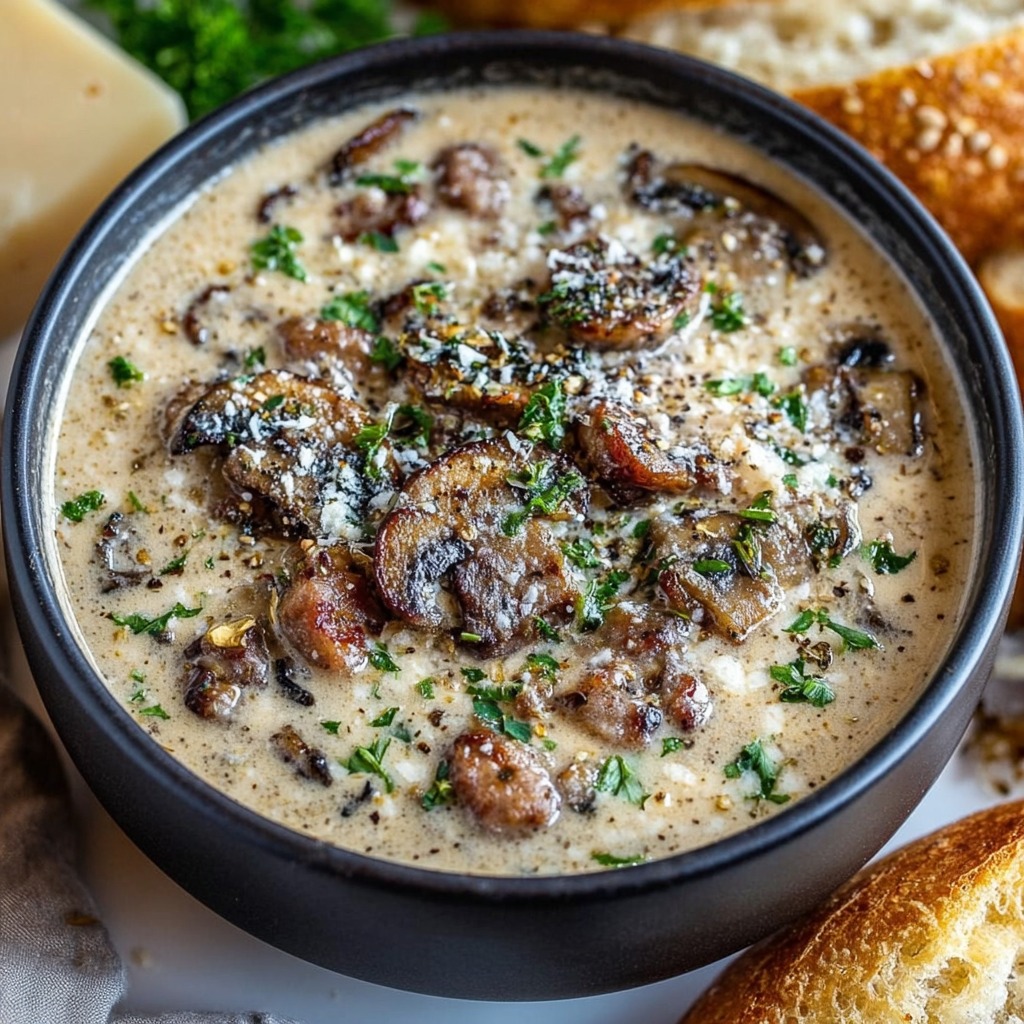 Soupe crémeuse aux saucisses italiennes parmesan et champignons