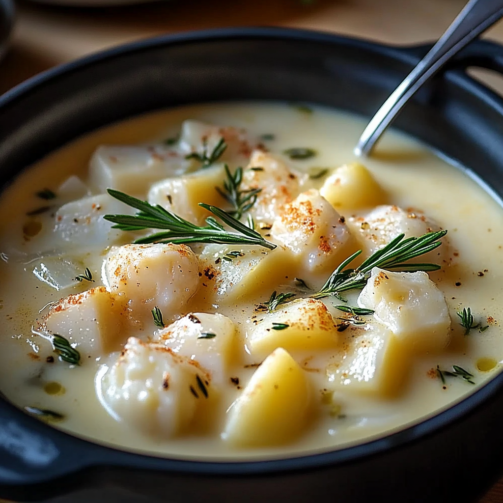 Soupe Crémeuse de Cabillaud & Pommes de Terre – Douceur Marine et Réconfort