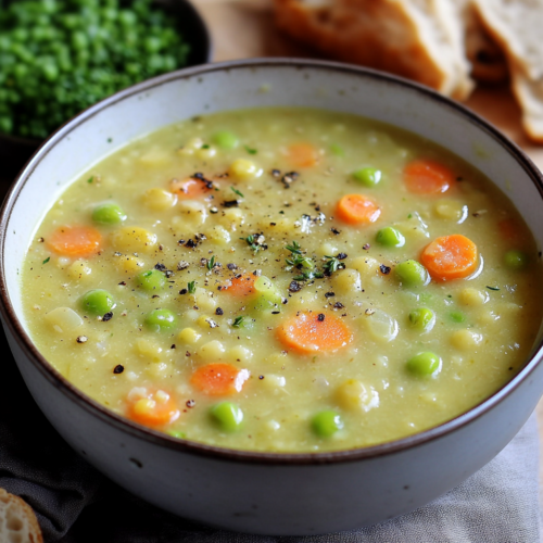 La Soupe de Pois Cassés Façon Campagnarde est une recette simple, réconfortante, et pleine de saveurs naturelles. Grâce à ses ingrédients accessibles et son mode de préparation facile, elle s’intègre parfaitement dans vos repas quotidiens ou lors de repas plus conviviaux. N’hésitez pas à varier les légumes et les herbes pour créer votre propre version et à ajouter des garnitures comme du lard, des croûtons, ou une cuillère de crème pour enrichir encore plus la soupe.