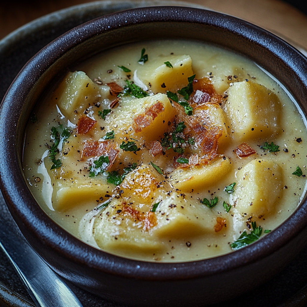 La mijoteuse est idéale pour cette recette, car elle permet de cuire lentement les pommes de terre, ce qui libère progressivement leur amidon et rend la soupe encore plus onctueuse. De plus, la cuisson lente permet de concentrer les arômes et d’obtenir une profondeur de saveur incomparable. C’est aussi une option très pratique, car vous pouvez lancer la cuisson le matin et retrouver une soupe prête le soir, sans avoir à surveiller constamment la préparation.