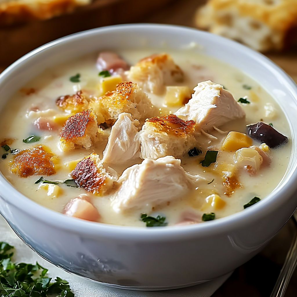 La soupe de poulet cordon bleu est un plat parfait pour les soirées en famille, les repas entre amis ou même pour un déjeuner réconfortant. Sa richesse et sa texture crémeuse en font un plat inoubliable, et sa simplicité de préparation en fait un choix idéal pour tous les cuisiniers, des débutants aux plus expérimentés. N’hésitez pas à essayer cette recette et à la personnaliser selon vos goûts !