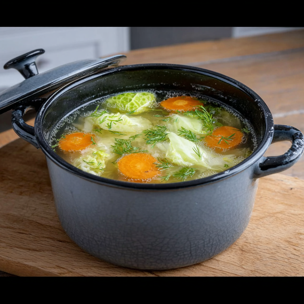 Ce plat simple, composé principalement de légumes, est idéal pour alléger les repas, soutenir une alimentation équilibrée et apporter une grande quantité de vitamines et de minéraux. En plus d’être économique, la soupe au chou est facile à préparer, se conserve très bien et peut être consommée plusieurs jours.