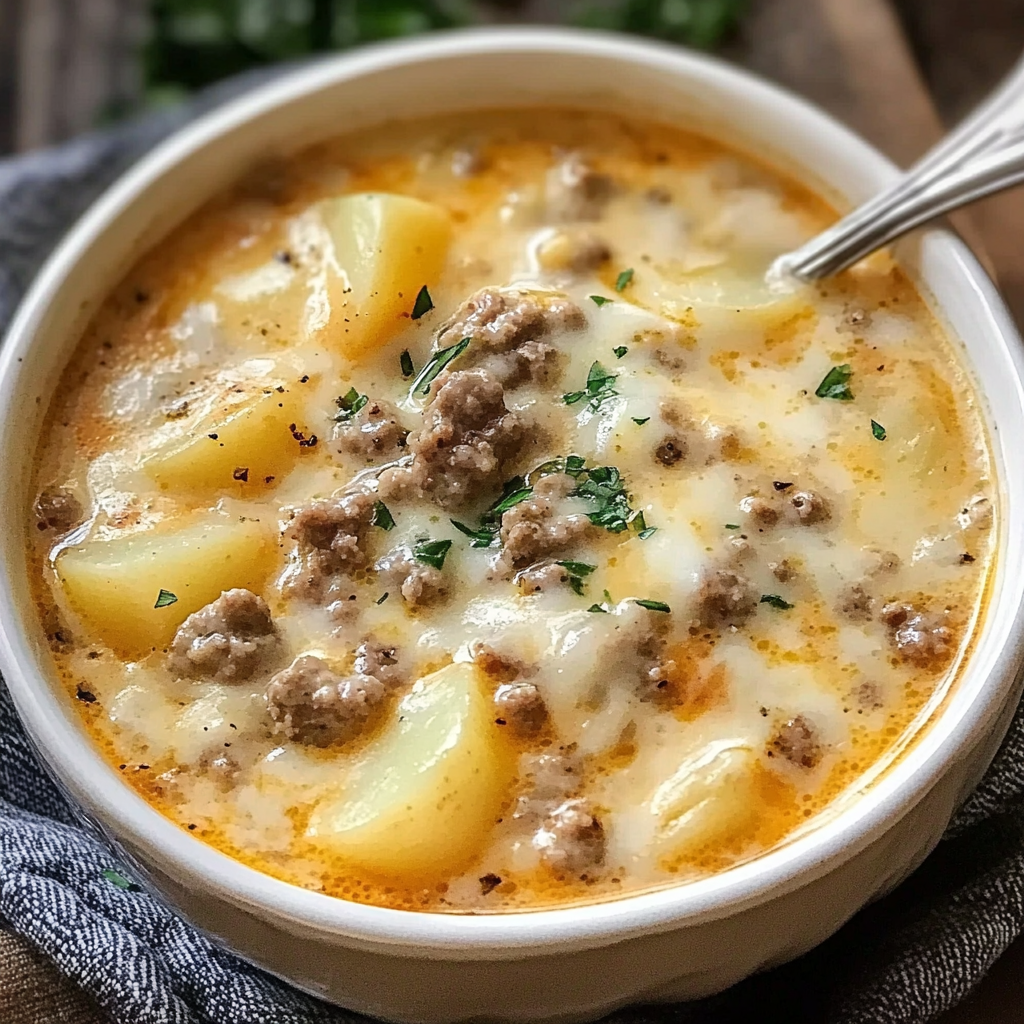 Soupe Fromagée au Hamburger et Pommes de Terre