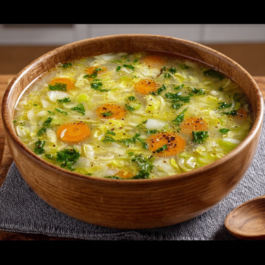 Contrairement aux idées reçues, manger léger ne signifie pas renoncer au goût. Cette soupe associe des légumes savoureux comme le chou, les carottes, le céleri et les oignons pour offrir un plat à la fois parfumé, rassasiant et nutritif.