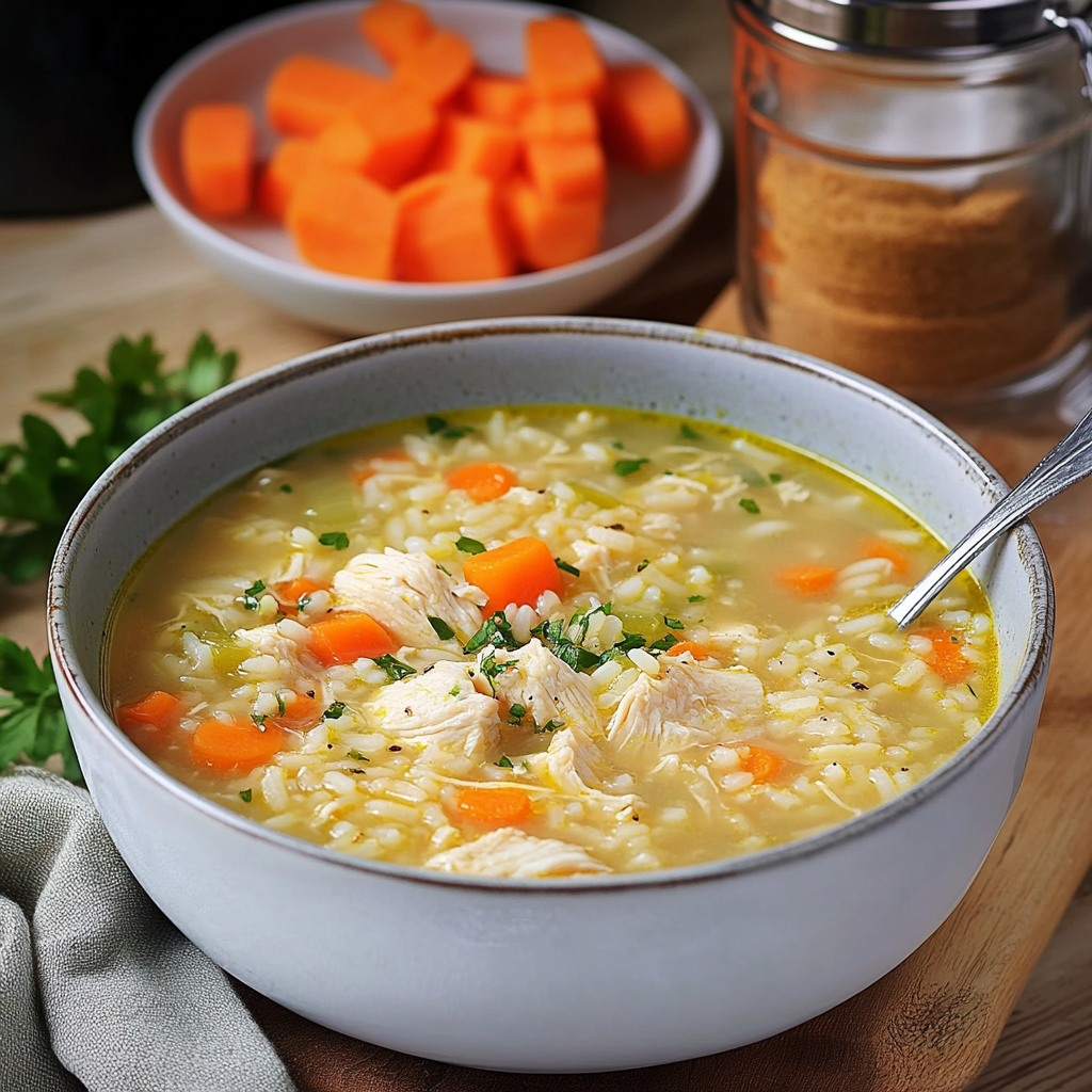 Profitez bien de cette soupe au poulet et riz, un véritable plat maison qui réchauffera votre cœur et ravira vos papilles !