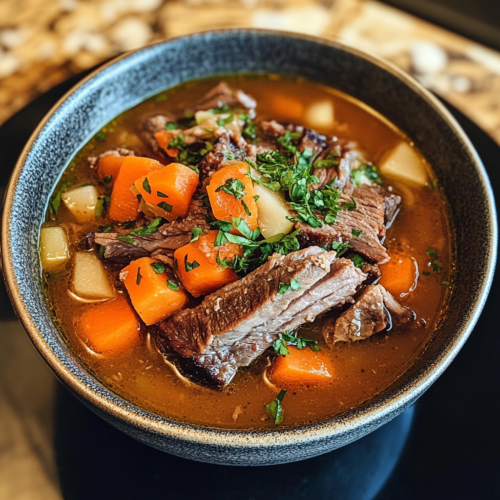 En résumé, cette Soupe Réconfortante aux Ribs de Bœuf, Pommes et Carottes est une recette à la fois facile à préparer et impressionnante. Elle allie la douceur des pommes et des carottes, le goût riche des ribs et des épices réconfortantes comme la cannelle et le gingembre. Un choix parfait pour un dîner réconfortant à partager avec vos proches.