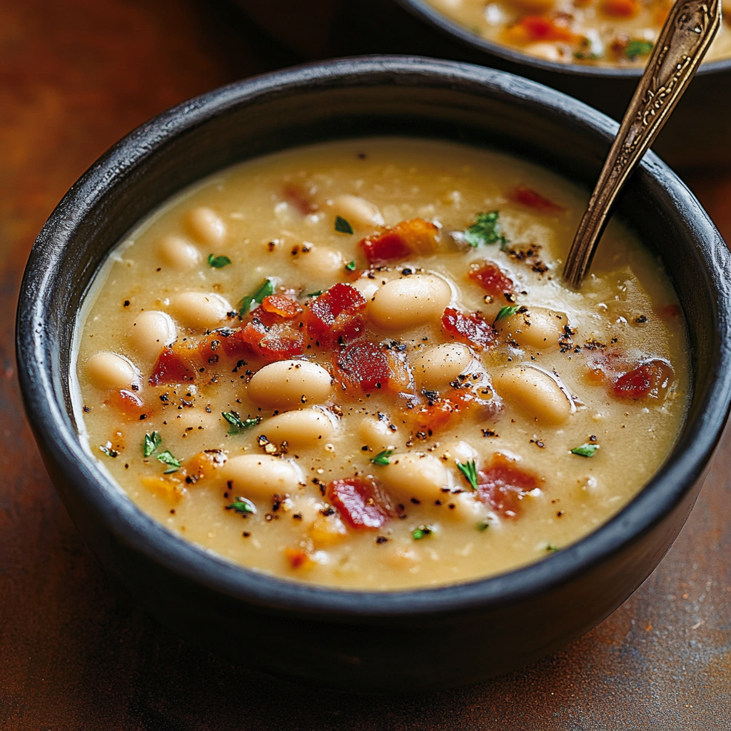 La Soupe Rustique aux Haricots Blancs et Bacon est le plat parfait pour les jours froids où vous avez besoin de quelque chose de réconfortant. Avec sa combinaison d’ingrédients simples mais savoureux, elle ravira toute la famille. Cette recette facile à suivre est idéale pour les cuisiniers débutants tout en étant assez délicieuse pour impressionner les gourmets.