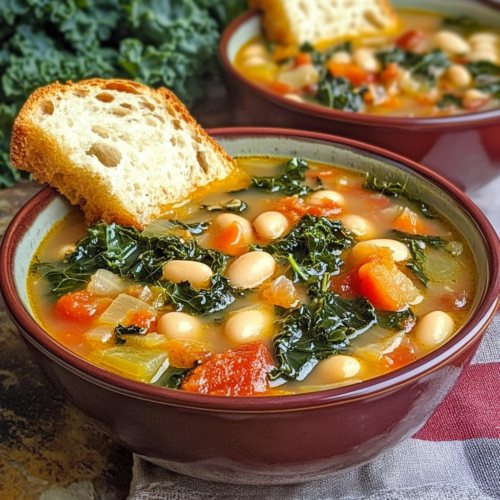 Introduction La soupe toscane aux haricots blancs et chou frisé, également connue sous le nom de Ribollita, est un plat traditionnel italien à base de légumes frais et de haricots cannellini crémeux. Ce plat réconfortant est parfait pour les journées froides ou pour une option santé pleine de saveurs. Le chou frisé apporte une texture savoureuse, tandis que les haricots blancs, cuits lentement dans un bouillon parfumé, enrichissent la soupe de leur onctuosité.