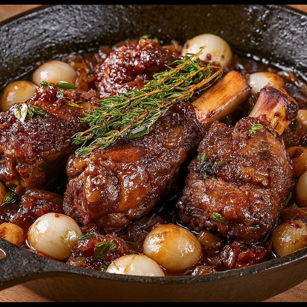 C’est le genre de plat que l’on prépare pour impressionner sans complication inutile. Il suffit de prendre son temps : une belle cuisson lente, quelques ingrédients bien choisis, et la magie opère. La viande devient fondante, les échalotes se gorgent des sucs de cuisson, et la sauce prend une richesse exceptionnelle.
