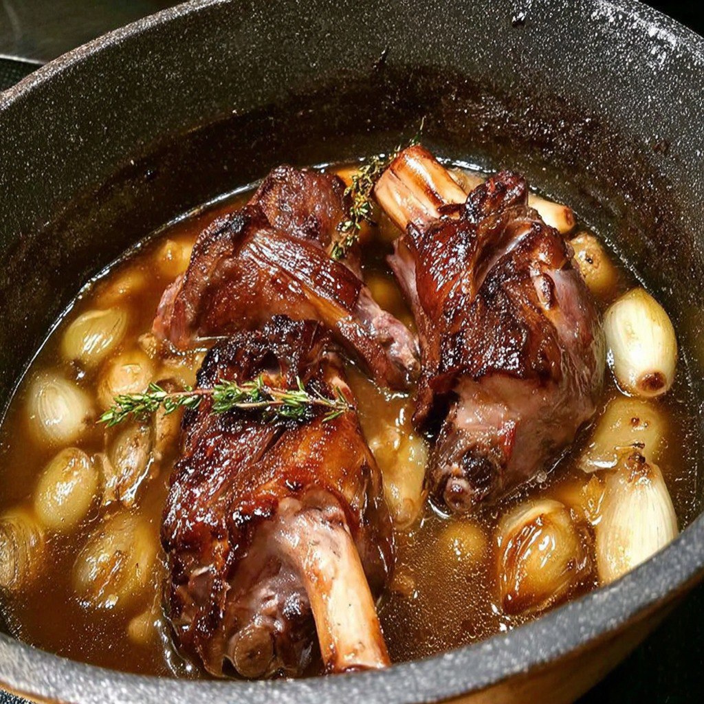 Les souris d’agneau confites représentent un plat emblématique de la cuisine traditionnelle française. Elles se distinguent par leur cuisson lente et prolongée qui transforme un morceau de viande ferme en une texture fondante, presque soyeuse. Le terme « confit » fait référence à une cuisson douce, souvent en présence de matières grasses ou de liquides aromatiques, qui permet aux chairs de s’imprégner pleinement des saveurs environnantes. C’est un plat généreux, profondément parfumé, qui trouve parfaitement sa place lors d’un repas en famille, d’un déjeuner dominical ou d’un dîner festif.