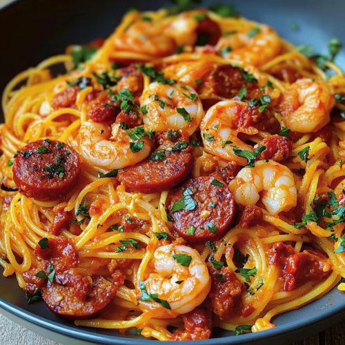 Les Spaghetti à la Crème de Poivron, Chorizo et Crevettes sont une recette qui allie simplicité et sophistication. Avec ses ingrédients faciles à trouver et ses saveurs méditerranéennes, cette recette deviendra rapidement un de vos plats préférés. La sauce crémeuse au poivron, combinée au croquant du chorizo et à la tendreté des crevettes, crée une expérience gustative inoubliable.