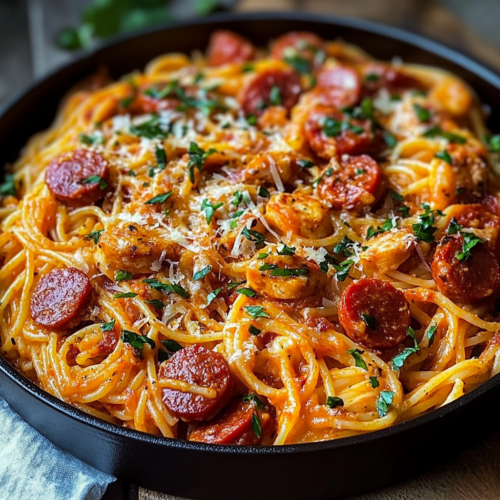Un plat délicieux aux saveurs méditerranéennes, crémeux et épicé, parfait pour un dîner gourmand et facile à réaliser ! Les spaghetti sont mélangés avec des poivrons rouges tendres, du chorizo savoureux et des crevettes juteuses, le tout enveloppé d’une sauce crémeuse au paprika doux. Cette recette vous offre une combinaison parfaite de textures et de saveurs, idéale pour impressionner vos invités ou pour un dîner en famille. Voici tout ce qu’il vous faut savoir pour préparer ce plat délicieux.