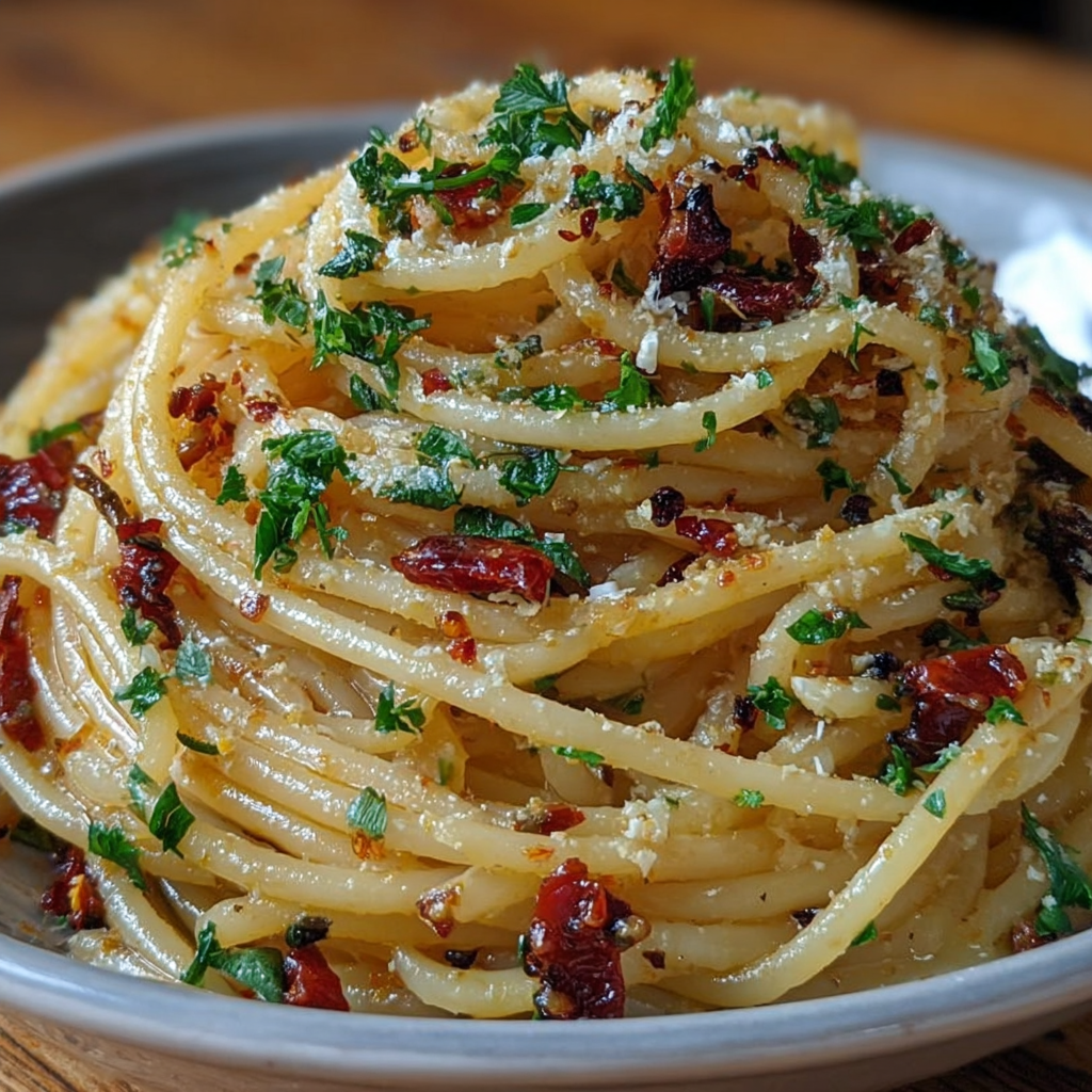 Ce plat est né dans les cuisines modestes du sud de l’Italie, où l’on utilisait ce que l’on avait sous la main : de l’ail, de l’huile d’olive, du piment et des pâtes. Et pourtant, le résultat est digne des plus grandes tables. C’est un plat qui sent le soleil, la convivialité et la générosité.